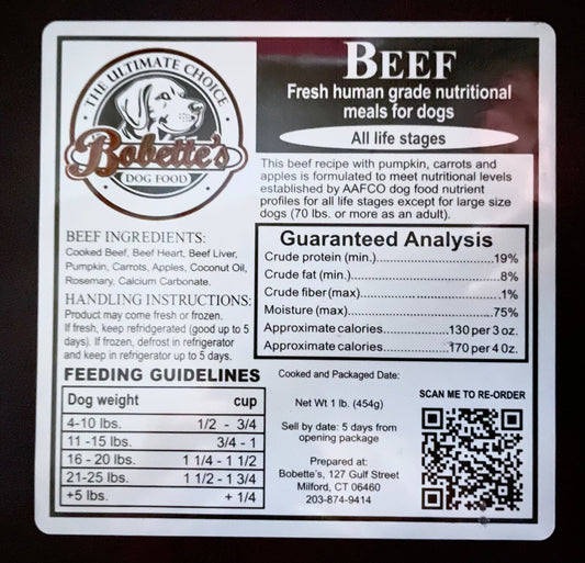 ONE MONTH Bobette's Dog Food Beef Subscription